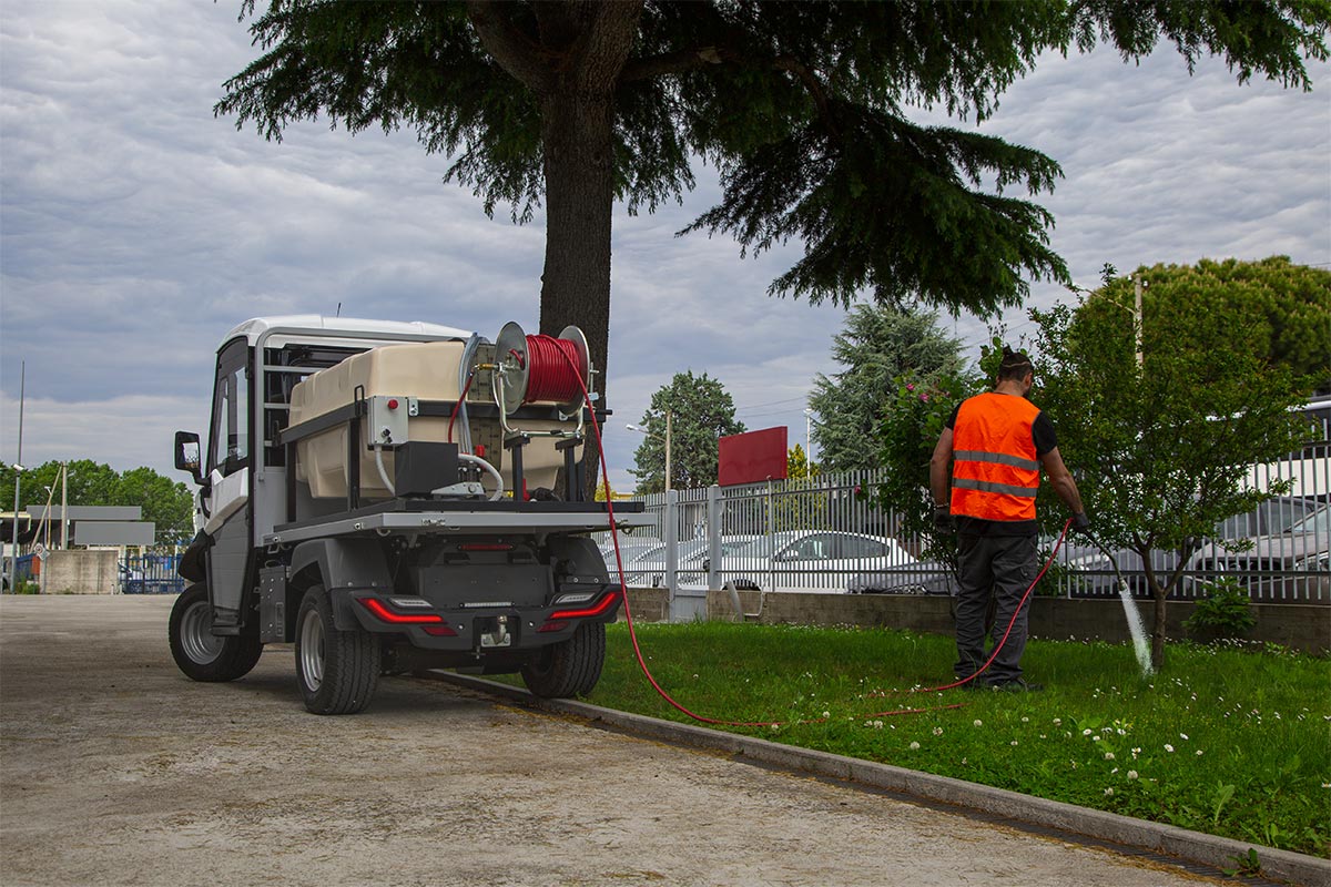 Alke' electric vehicles can be equipped with pressure washer or sprayer for maintenance of urban and green areas and street cleaning. The 600 litre tank guarantees greater functional autonomy.
